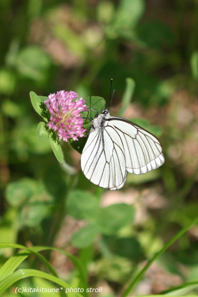 【チョウ目 シロチョウ科 エゾスジグロシロチョウ】5月の初め、花壇に来た蝶をパチリ。ちょうど花撮影をしていたのでカメラ持ってて良かったぁ。手持ち図鑑で調べてみたら、春型のメスのようです。 1枚めの写真と同じ個体です。