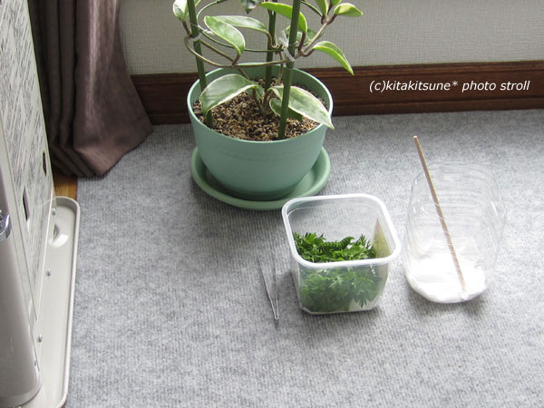 新しい葉の上に移動したら、古い葉をピンセットでつまんで出します。